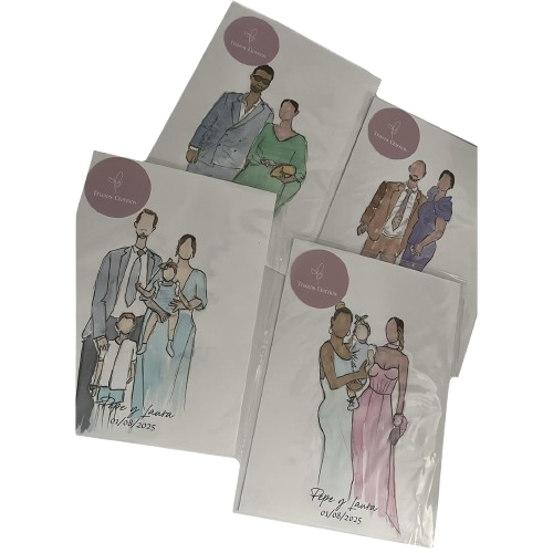 Mi filosofía: Prefiero menos cantidad y más emoción. Cada ilustración lleva tiempo, cariño y atención al detalle. No es solo pintar rápido, es capturar la esencia de cada persona y crear un recuerdo que emocione de verdad.